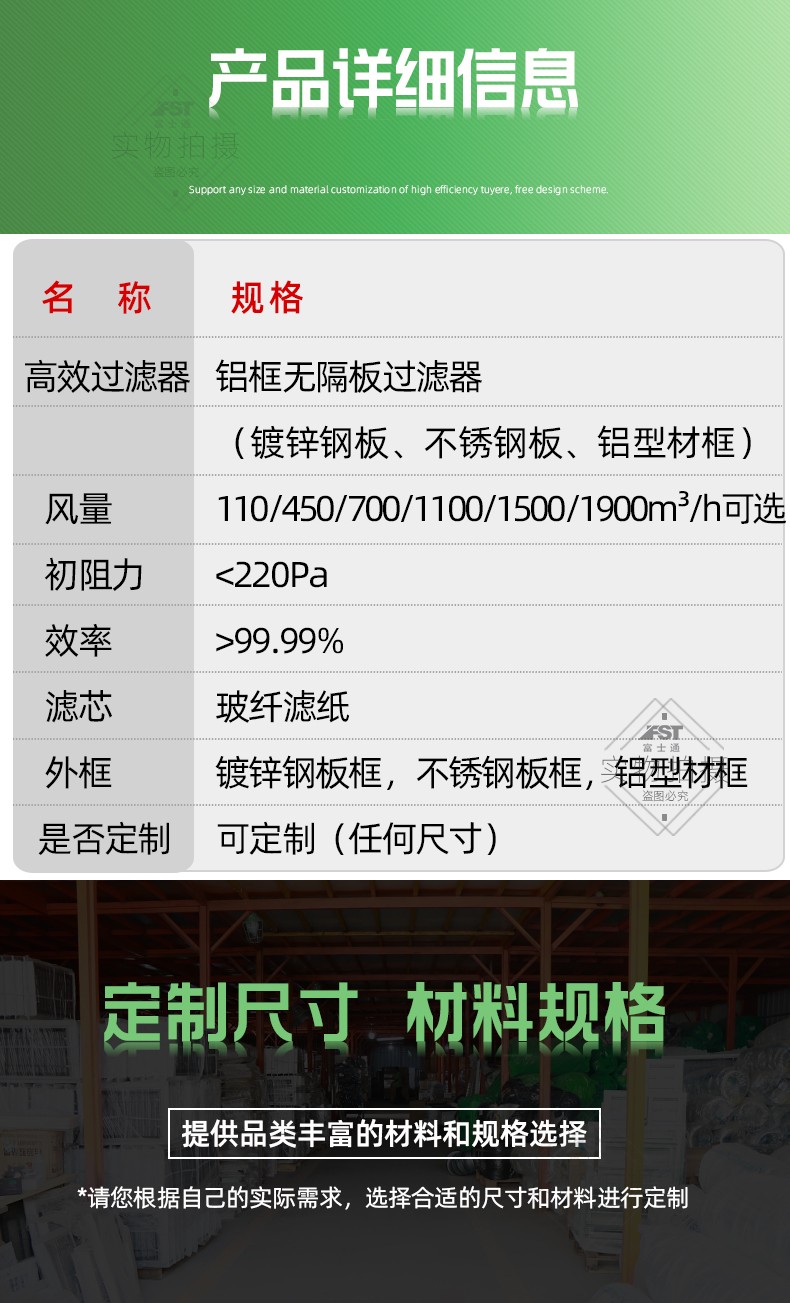 過濾效率:99.99%(可定做任何效率)
